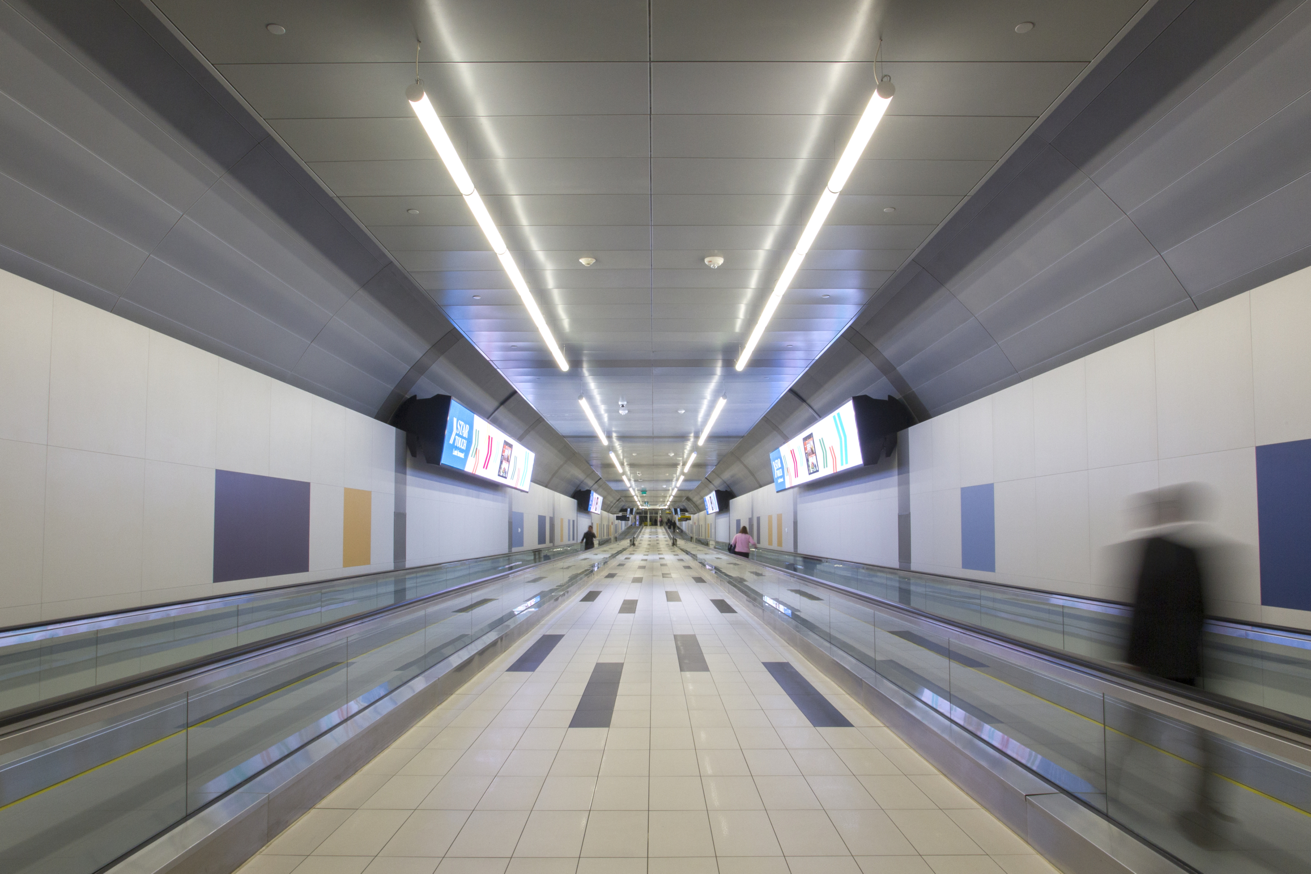 The Billy Bishop Airport Tunnel provides passengers with a fast, convenient and reliable way to access the airport. Prior to the opening of the tunnel, commuters had to travel to the airport by ferry. Now, they can walk through the underwater tunnel connecting them to the airport in less than six minutes.