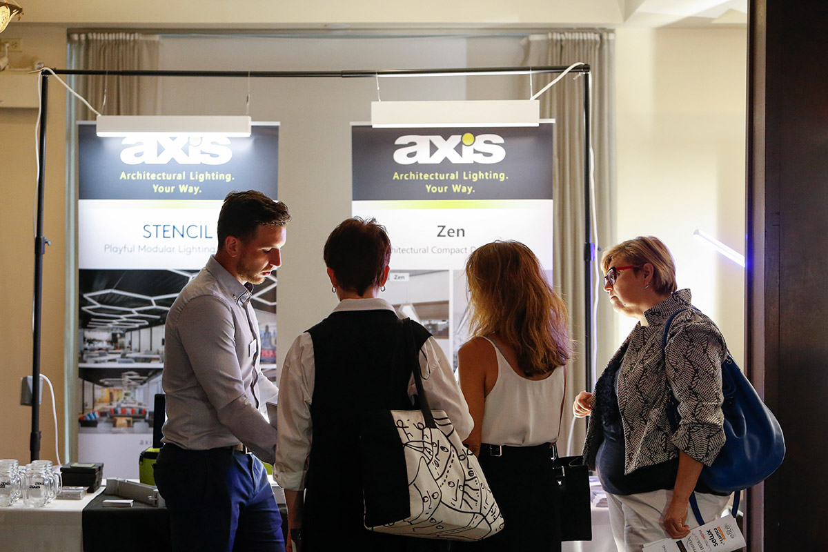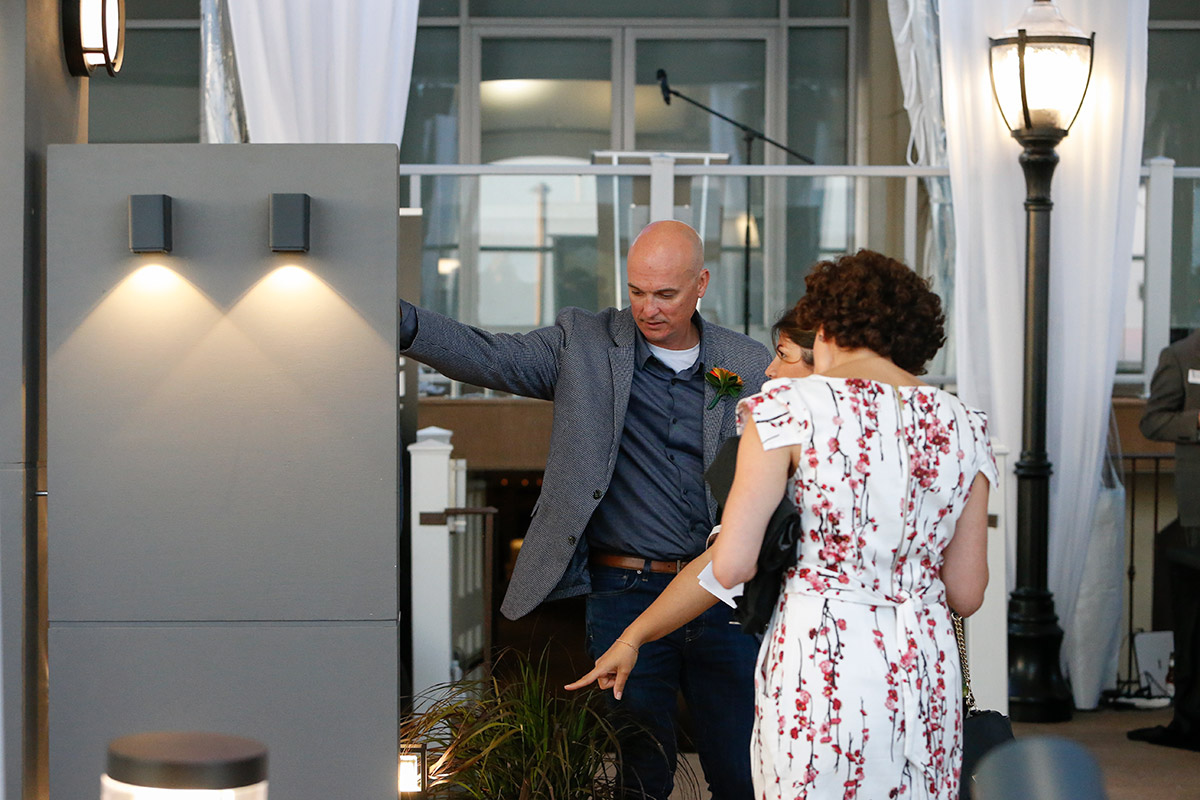 Guests were also invited to enter and participate in a raffle draw. Upon arrival, guests received an event “passport” and were invited to peruse the outdoor and indoor lighting and furniture displays and speak to manufacturer representatives to receive a signature on their passport. For every signature, guests received an additional raffle ticket in the draw for the grand prize – a trip for two to the IALD Lighting Design Event in Seattle!