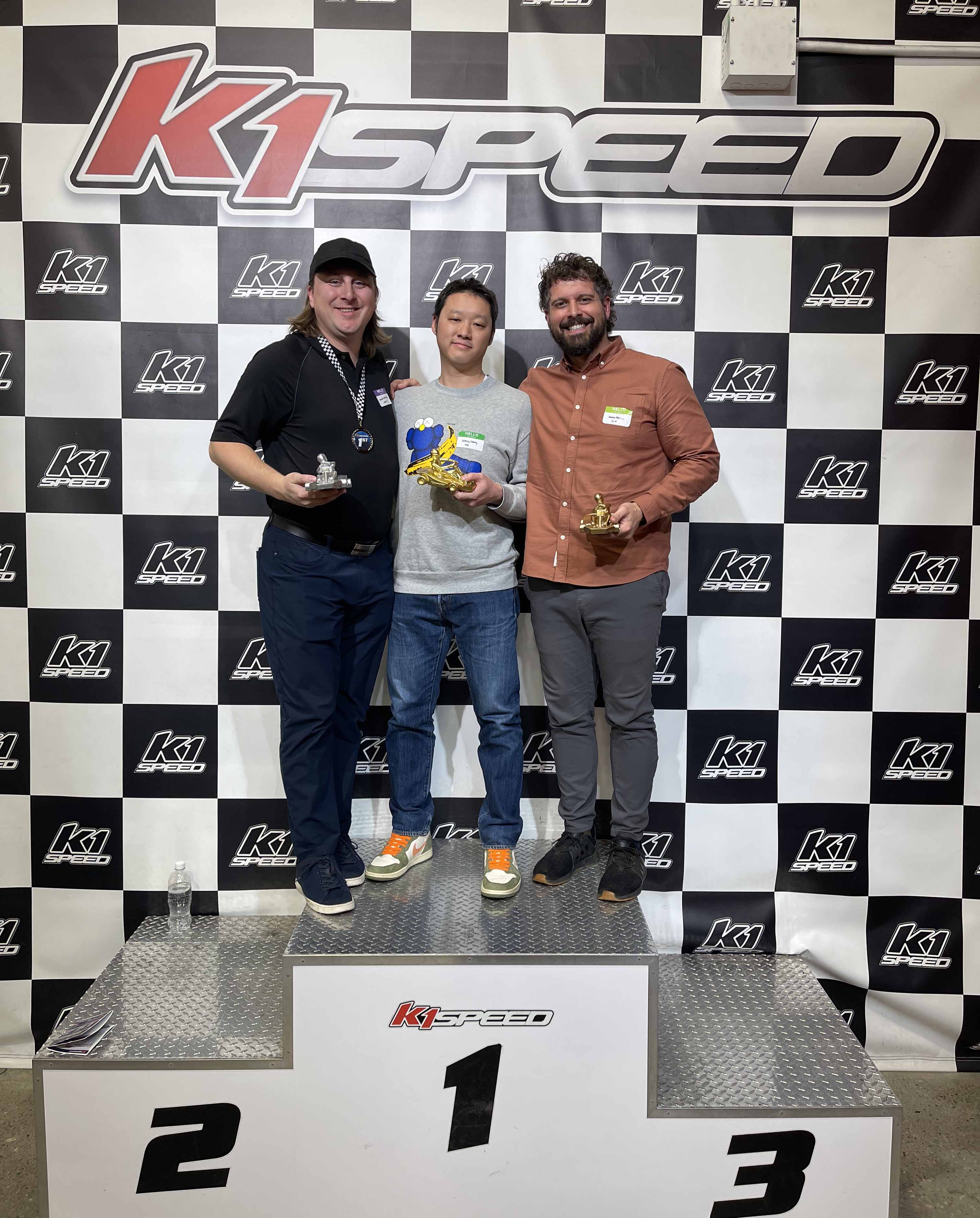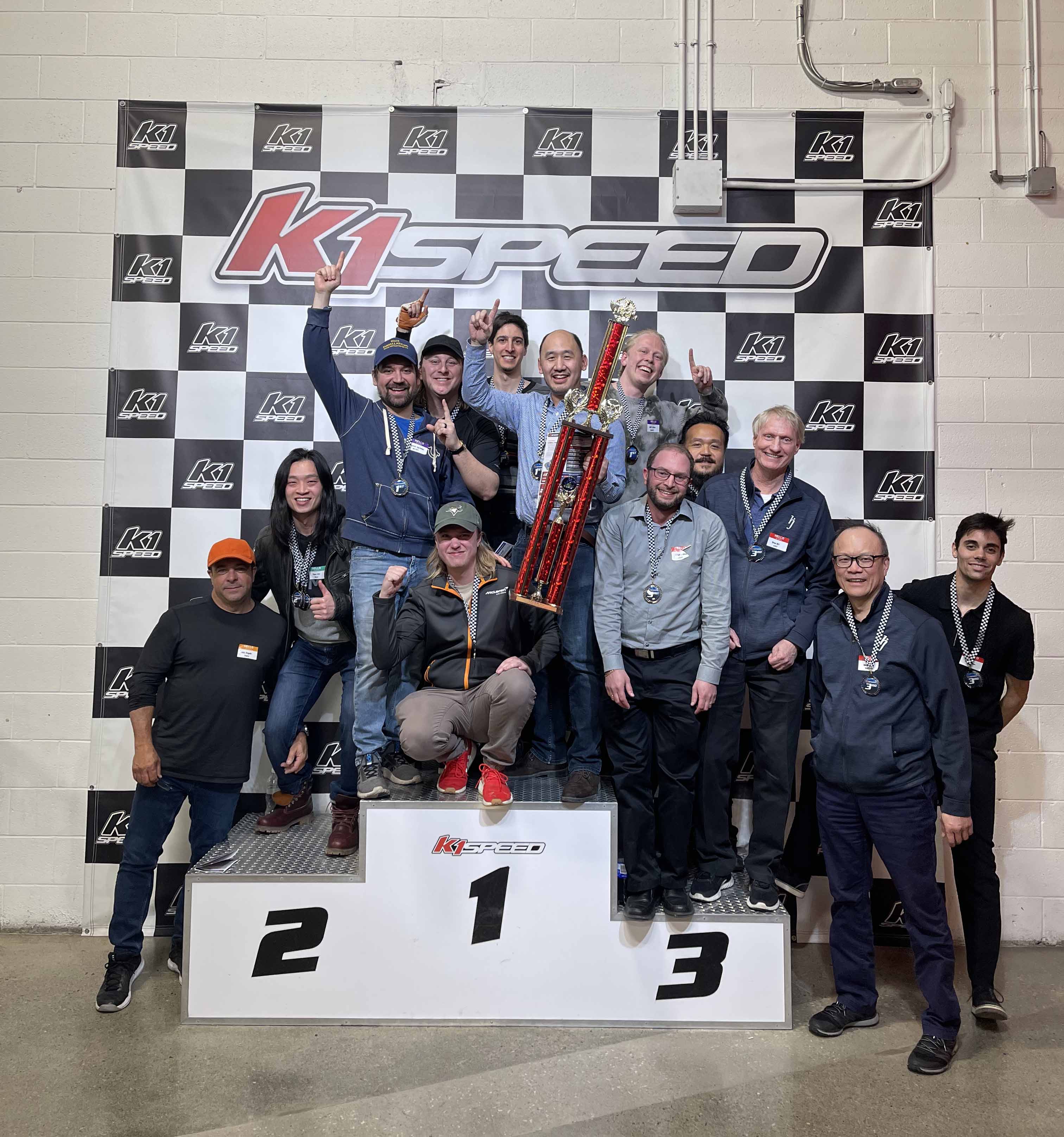 After a series of intense races, the Mulvey & Banani team claimed the top spot once again with an impressive average lap time of 22.460 seconds, followed closely by MCW (22.790s) in second place and H & J Group (22.801s) in third. The competition was tight, with all teams putting in fantastic efforts, separated by only tenths of a second! Our evening concluded with the Top 10 fastest racers, competing for glory in an F1-style race. Quincy Cheung from WSP took first place, with Michael Mikolainis (Mulvey & Banani) coming in second and Shawn Pascoa (Smith + Anderson) rounding out the podium at third.