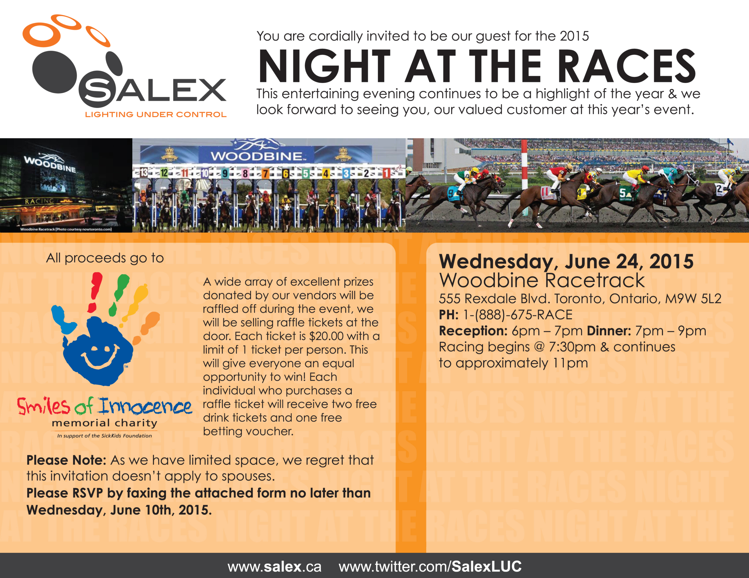 For the past 10 years, Salex has been proudly supporting The Hospital for Sick Children through our exciting Night at the Races event. An evening of fun, philanthropy and mingling with colleagues at Woodbine Racetrack, our annual fundraiser sees close to 200 attendees from the lighting specification industry, including landscape architects, lighting designers and engineers.