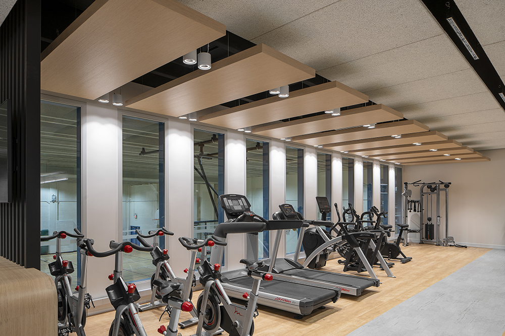 Salex collaborated with Sharma & Partners and Architecture Counsel Inc. to transform an unused area of the Canadian Memorial Chiropractic College into a modern fitness facility. The gym’s design objectives centered on creating an energizing, productive space that catered to its unique architectural features and multipurpose functionality. To achieve this, the lighting solutions prioritized low-profile, glare-reducing fixtures that could integrate into various ceiling systems and comply with code requirements.