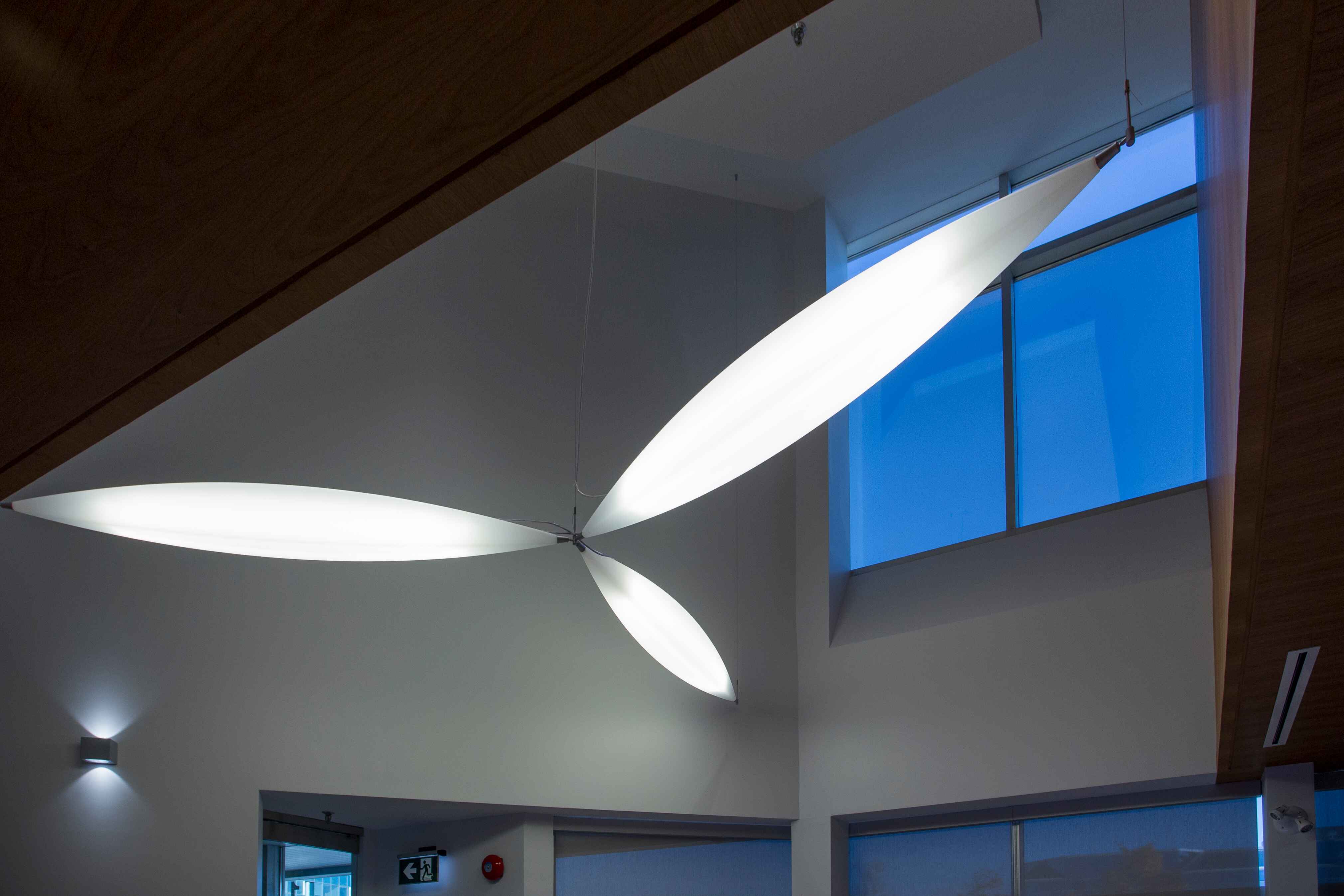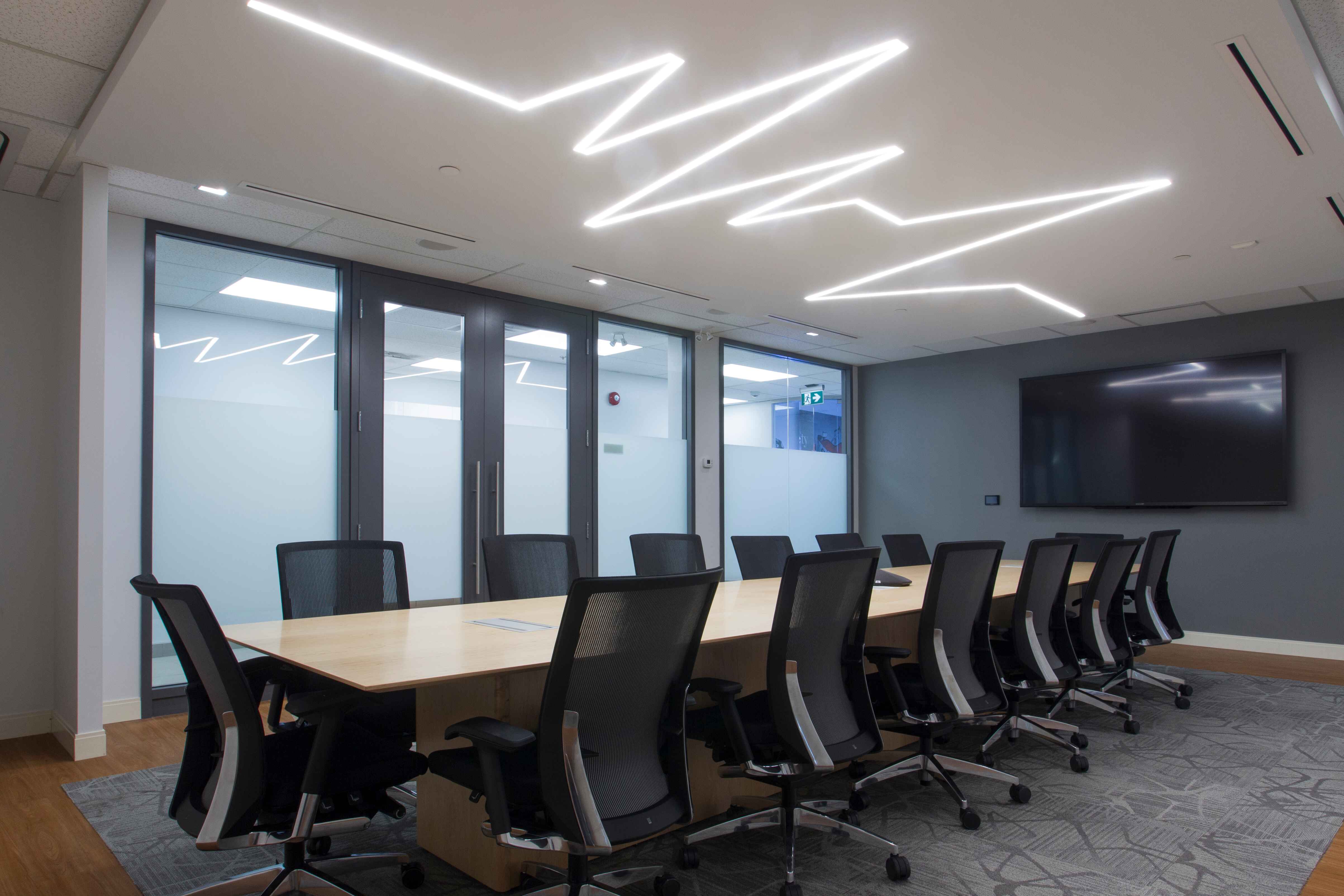 Salex was tasked with creating innovative lighting solutions for its new Canadian office, headquartered in Mississauga, Ontario. With Dräger’s focus on developing solutions for all areas of life in mind, we designed a lighting fixture in the shape of a heartbeat in partnership with SDI Design and Selux for the office’s Lübeck boardroom. Several of our manufacturers also played an important role in the lighting design of the new Dräger Canadian head office. Along with Selux, we worked with Delta Light, Zumtobel, SGi Lighting and Designplan Lighting.