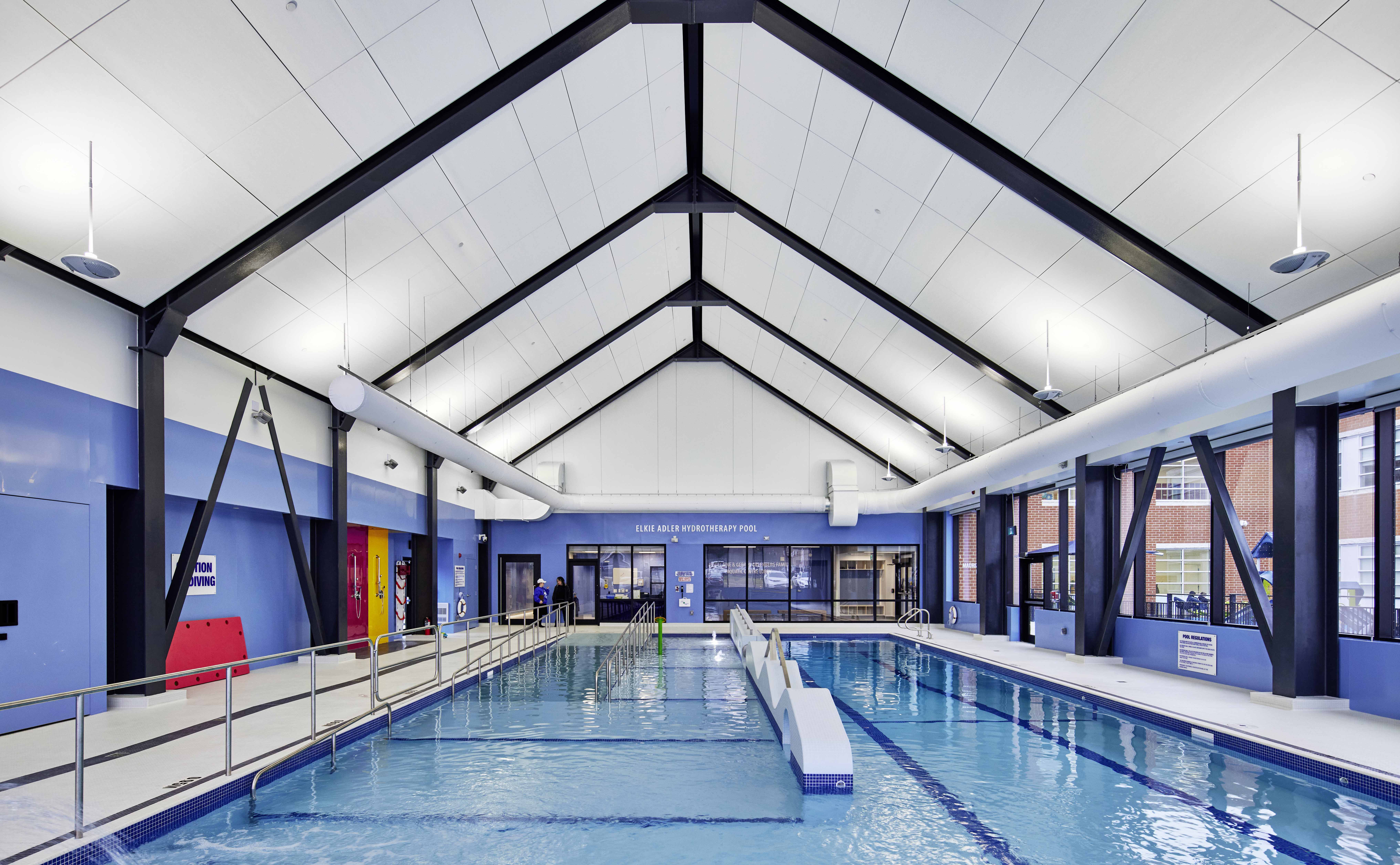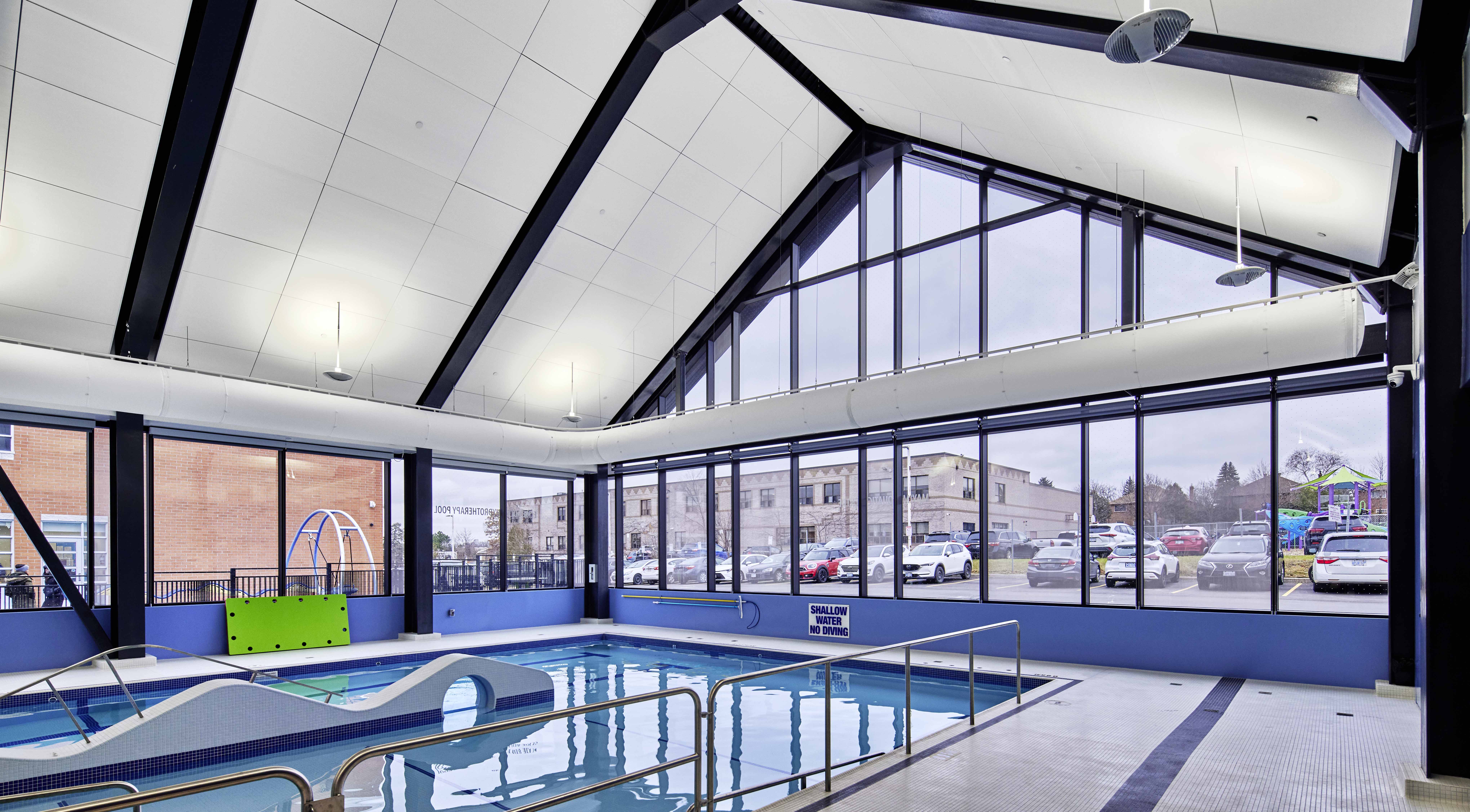 G Architects and Quasar worked with Salex to find the right lighting solution for the Mayim Aquatic Centre and Elkie Adler Hydrotherapy Pool. Whiz 2.0 by Meteor Lighting was the perfect light for the swimming pool application as it is natorium-rated. In addition, an indirect light source was required. Chlorine vapours were present in the swimming pool area, so it was important to have a suitable fixture for the corrosive environment.