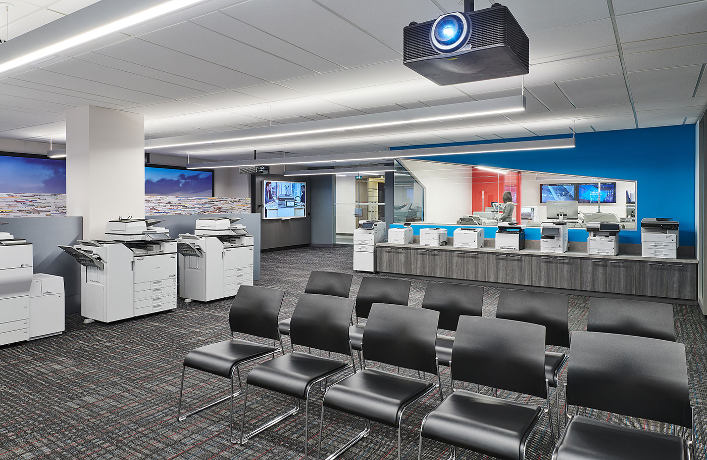 A global technology company, Ricoh has been transforming the way people work for over 80 years. Continuously empowering both companies and individuals to work smarter through its innovative products and services, the brand is well recognized for its long history of introducing transformative technologies into the workplace. So, when it came time to outfit its own offices, Ricoh sought a lighting solution that would be as dynamic as the company itself, capable of meeting a multitude of lighting functions as well as the evolving needs of the organization.