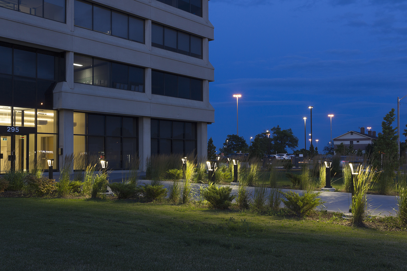 That’s why Seferian Design Group was brought on as landscape architects, while Salex was enlisted to recommend the proper outdoor lighting products that would illuminate the parking lot, pathways, main entrance and perimeters of the building in attractive and safe ways.